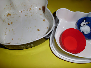 Lunch: Heart shaped, tie dyed hard boiled egg. Grapes. Whole wheat pumpkin pancakes with cinnamon butter lightly spread on them. Bunny friend. Real maple syrup, about two teaspoons in a separate container, not shown.