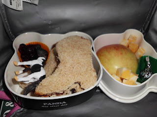Lunch: Strawberry jelly on whole wheat cowgirl boot sandwiches. Prunes and craisins. Apple, cheese cubes and a Hersey's Kiss. A pony to make her smile.