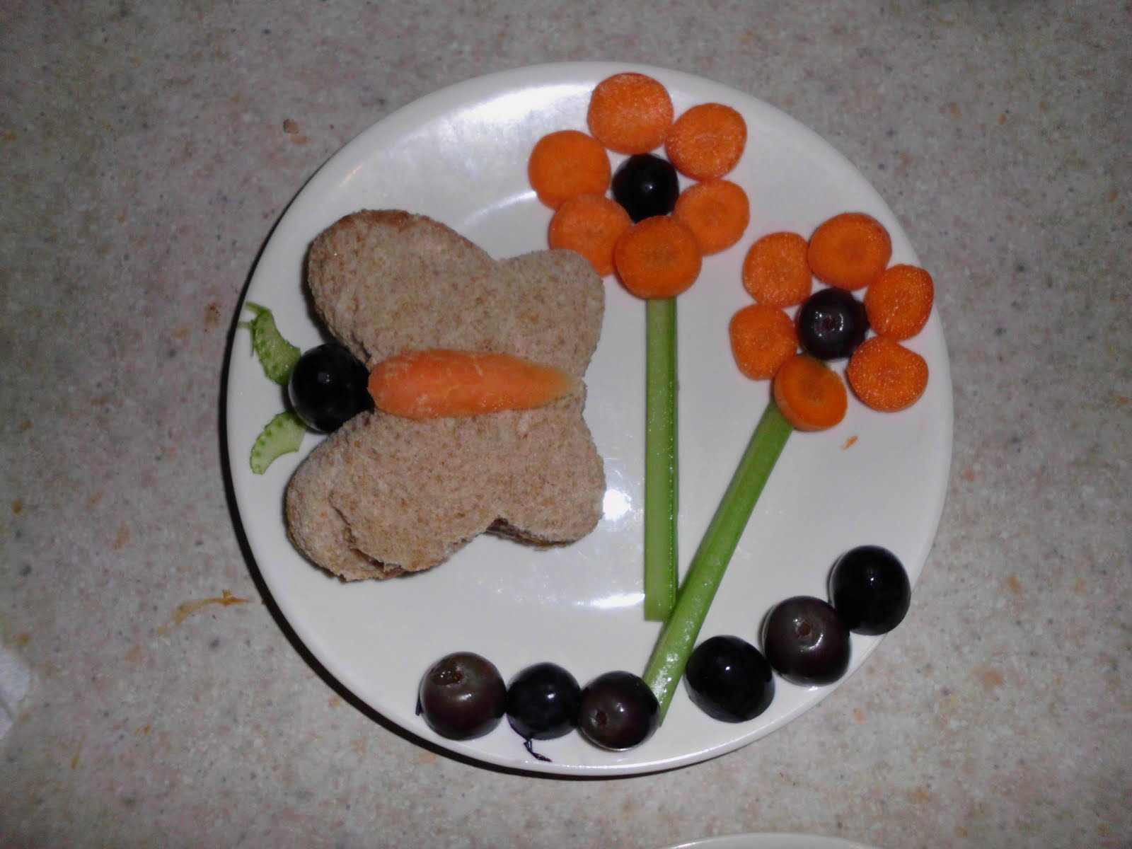 This day way a major victory. All that was left was a single 1" section of celery! Out of two identical plates, served to two non celery fans, 90 % ish gone! I was very excited. That old rule of offering it over and over, actually does work. Had I just given them sticks and not flower stems though, I'm betting it would have gone untouched.
